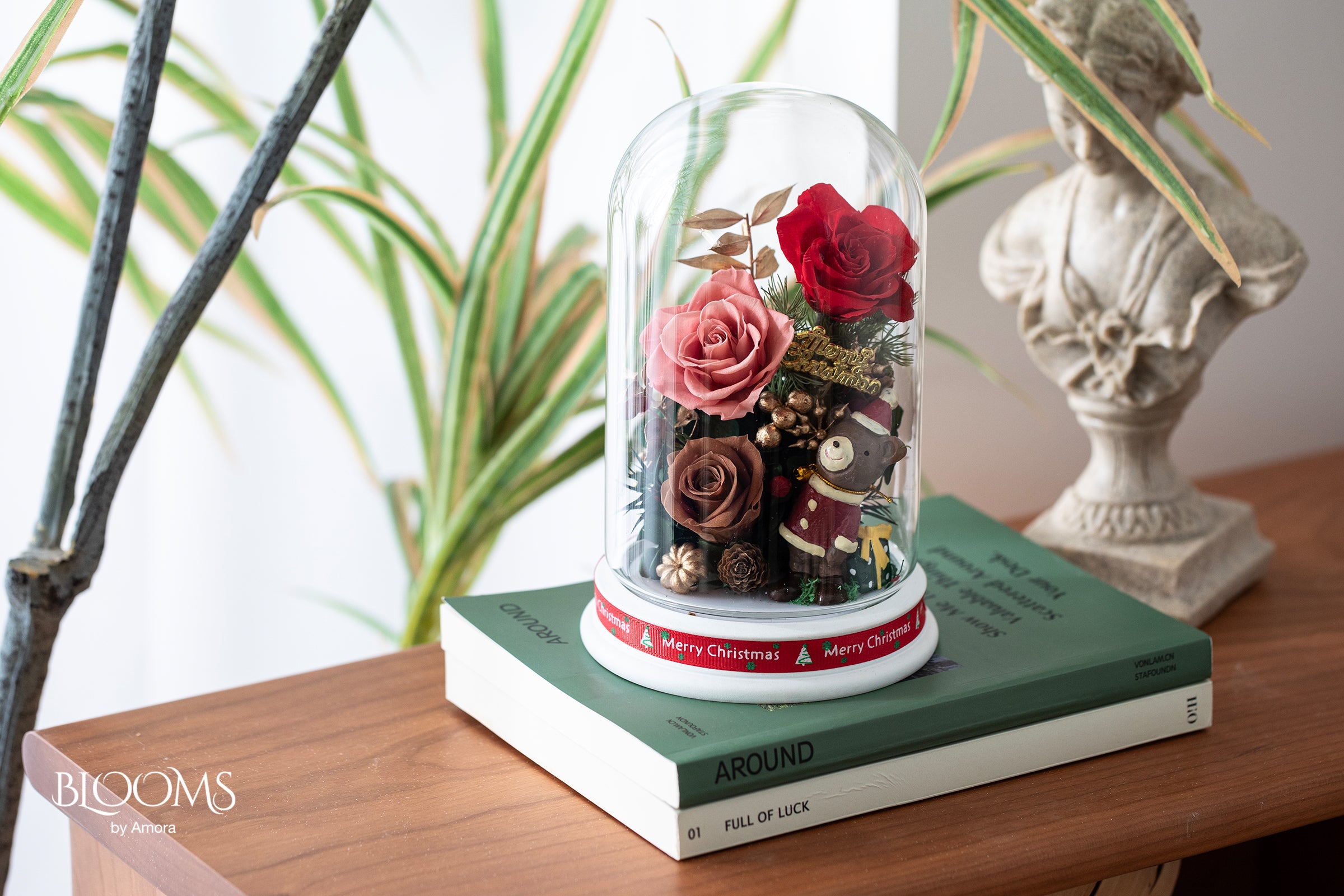 Preserved Flower Pat Christmas Dome D (Rose)-Xmas004P-10*16cm